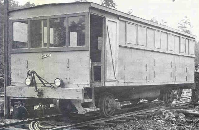 In addition to the Shay, the company used a White truck converted with flanged wheels to rail operations. The truck was later rebuilt with an enclosed body to transport loggers to and from the woods.