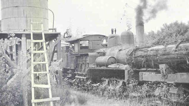 Caterpillar tractors were first used in logging operations in 1935. By 1950, logging had reached the summit, and trucks won out over the cost of extending the railroad up and over. The last train ran in early 1950, after which the rails were torn up and the roadbed converted to a truck road. Old No. 2, still in first class condition, and the cars were stored until 1954, when Ed Paulsen had the unpleasant task of cutting them up for scrap, which the company sold to a Niles steel company. Only the whistle, bell, and builders plate were saved.