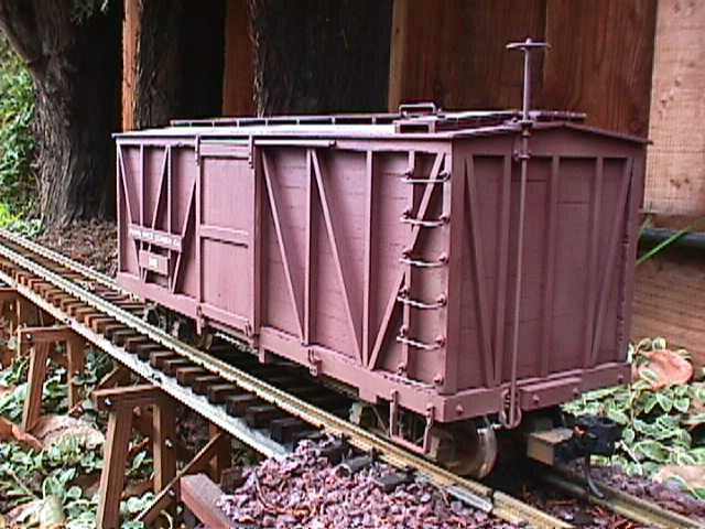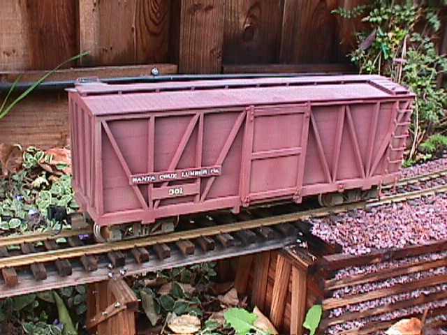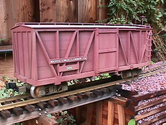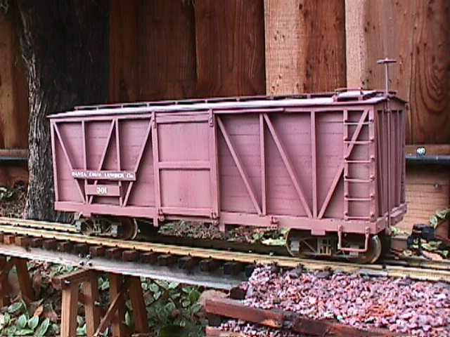 Boxcar No. 301 was the first piece of rolling stock aquired by the SCLCo. Built from scratch in the company's own shops from plans found in Garden Railways magazine, it first saw service in May of 1926. Dwight Ennis, the CEO of the SCLCo, envisioning grand schemes for connections with other common carriers (and the dollar signs that went with such connections), insisted that the Maintenance Foreman, one Benson Ennis, and nephew to the CEO, come up with a "standardized company numbering scheme for its rolling stock" which he could sign off on (whereupon, after relaying his instructions, he then promply left to take his afternoon nap like any man of great importance). The Foreman, sensing an exercise in futility, did his best to ignore the "request" of his boss, but the old man was insistant, harrassing poor Benson daily for weeks on end. As the new boxcar neared completion, Benson finally caved in, and came up with a scheme in which locomotives and cabooses would simply be designated with the number of the order in which they were aquired. Flat cars would be numbered 201-299, boxcars 301-399, gondolas 401-450, with hoppers and ballast cars taking the remaining 451-499, and tank cars bringing up the rear with 501-599. Remaining numbers were "left open to be used as the need arises." Log cars were left unnumbered, "since the likelihood of these leaving the home rails is remote at best."